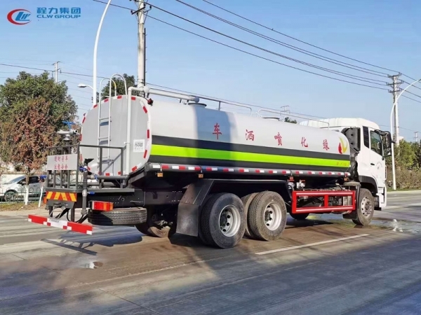 罐體實(shí)際容積為20立方米,采用武鋼4mm優(yōu)質(zhì)碳鋼板一次卷壓成型。配備專用灑水泵,前噴后灑、側(cè)噴、后工作平臺(tái)及灑水高壓炮。后工作平臺(tái)水炮可調(diào)成:直沖狀、大雨、中雨、小雨、毛毛雨,有效射程≧25-28米。整車帶消防接頭、自流閥及自吸自排功能。附送2根3米水管,1個(gè)爬梯,兩側(cè)及后保險(xiǎn)杠。東風(fēng)天龍灑水車底盤技術(shù)參數(shù)底盤型號(hào)燃料種類柴油輪胎規(guī)格輪胎數(shù)發(fā)動(dòng)機(jī)型號(hào)發(fā)動(dòng)機(jī)生產(chǎn)企業(yè)排量(ml)東風(fēng)康明斯 | 6700 | 290 | |||