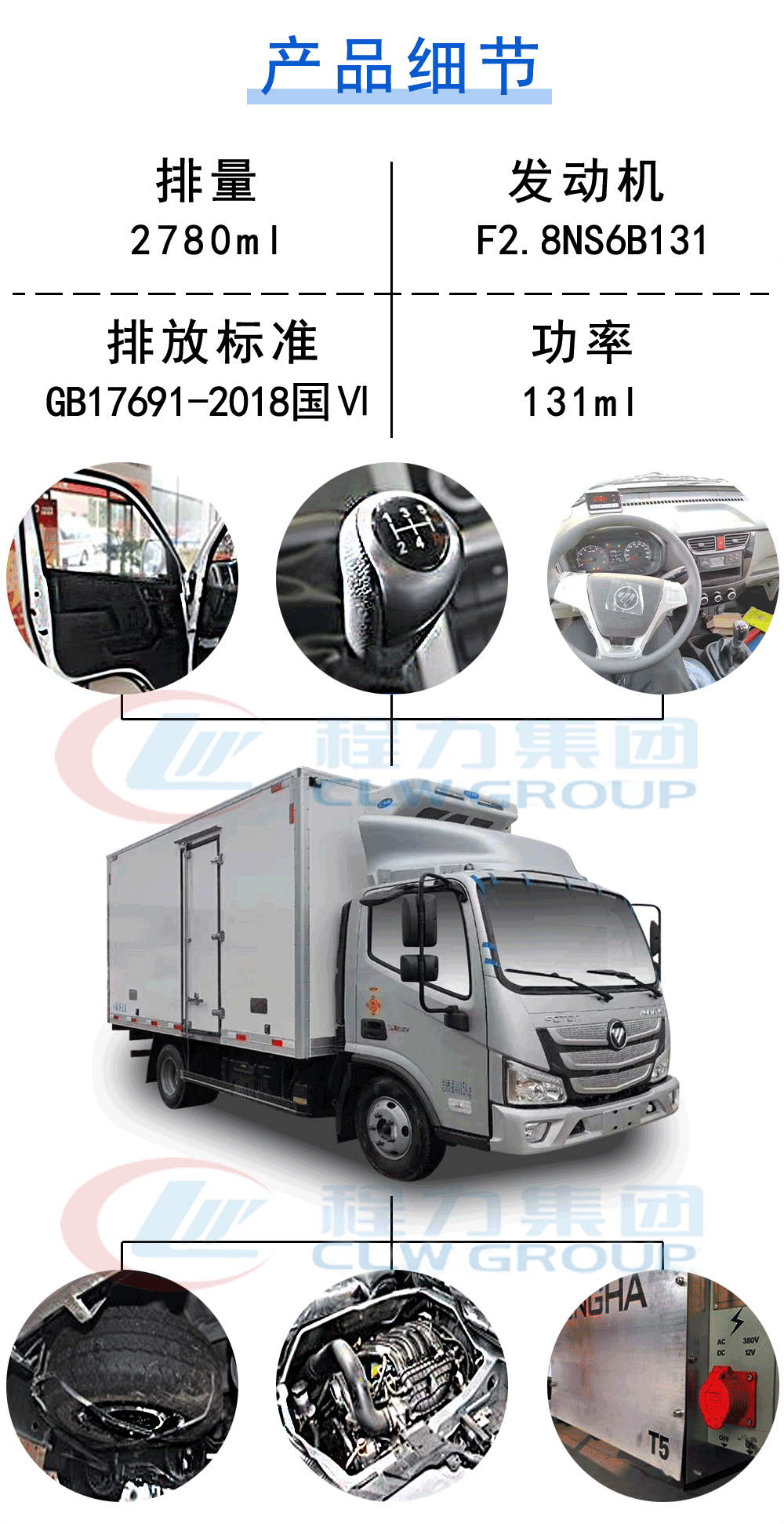 | 其他 | 1.選裝導流罩;選裝兩側單、雙、無側開門;選裝同等功率制冷機組,外觀形狀可不同.2.ABS型號及廠家對應關系:液剎:ABS系統(tǒng)型號:YF8;生產企業(yè):武漢元豐汽車電控系統(tǒng)有限公司.氣剎:ABS系統(tǒng)型號:ABS-VI.E;生產企業(yè):廣州瑞立科密汽車電子股份有限公司.3.F2.8NS6B131、F2.8NS6B156發(fā)動機最大凈功率分別為93kw、112kw.4.選裝前圍及前部燈具,前下視鏡為選裝件可不裝,選裝排半駕駛室,排半駕駛室對應貨箱內部長度為3700mm,單排駕駛室對應貨箱內部長度為4080mm.5.側防護的連接方式是與貨箱橫梁螺栓連接,側防護材料為冷板B-2.0/20,選裝材料為20號鋼的側防護、選裝鋁合金6061-T6側防護.后防護連接方式是與車架縱梁螺栓連接,后下部防護裝置材料為Q345A,選裝材料為AL6082-T6的后下部防護裝置。后部防護裝置截面尺寸100×50mm,后防護距離車輛離地高度470mm;6.發(fā)動機F2.8NS6B131、F2.8NS6B150、F2.8NS6B156對應油耗值為10.8;7.貨廂頂部封閉,不可開啟.8.準拖掛車總質量為3500kg,中置軸掛車的牽引桿深入量750mm,中置軸牽引桿連接器最大負荷350kg. | ||